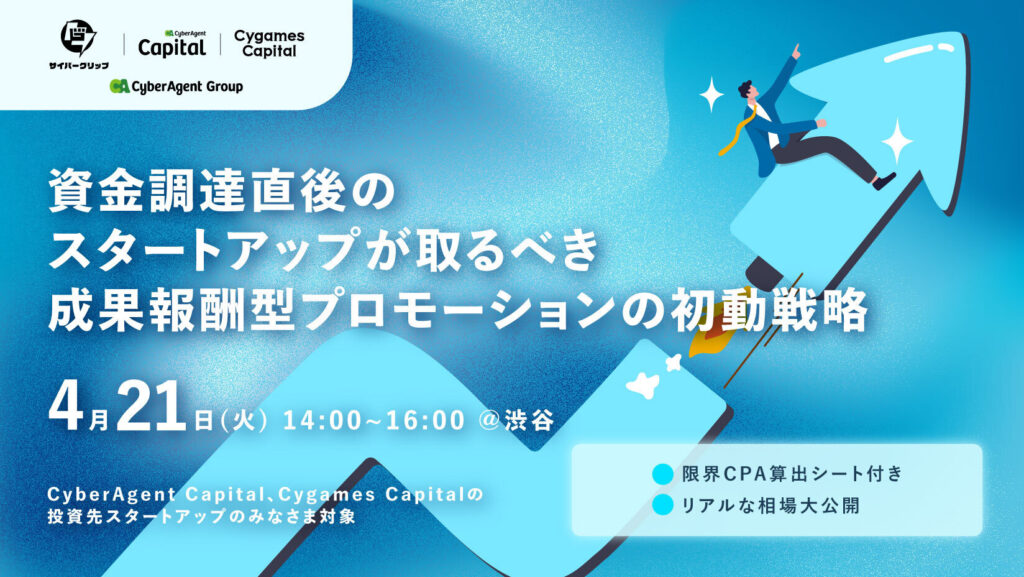 〜サイバーグリップ、Cygames Capital、サイバーエージェント・キャピタルの3社連携で、スタートアップ企業向け合同勉強会をに4月21日に開催〜
